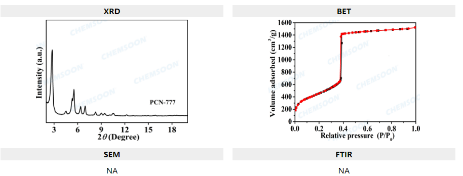 1) PCN-777空氣中穩(wěn)定,水溶液和弱酸性-弱堿溶液中穩(wěn)定(PH 3-11),有機溶劑穩(wěn)定