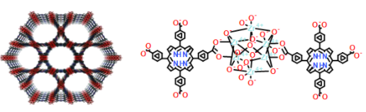 1) PCN-222具有穩(wěn)定的一維孔道,可負載金屬催化劑或儲氣及吸附材料