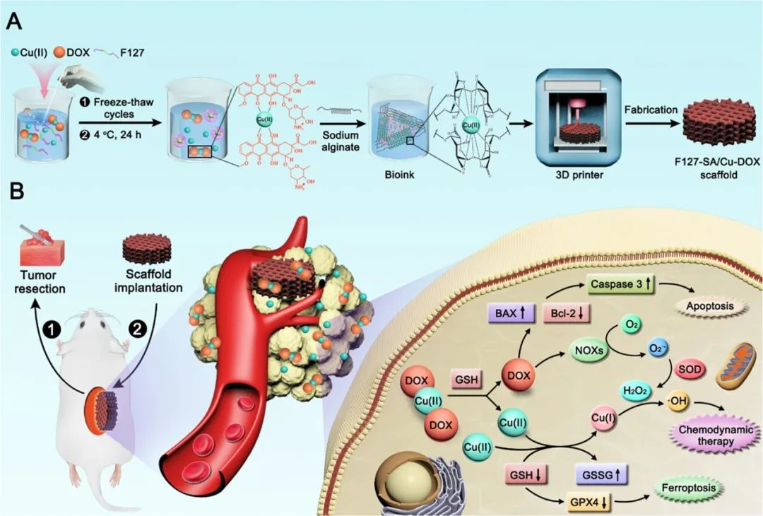 應(yīng)用:植入式3D打印銅-阿霉素復(fù)合水凝膠用于腫瘤切除術(shù)后治療