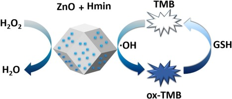 【主要優勢】ZIF-8基體保護CDs不發生聚集和猝滅,CDs與ZIF-8的協同作用促進了電子轉移,使復合材料具有優異的過氧化物酶樣活性。在催化體系中加入谷胱甘肽(GSH)后,ox-TMB被還原,導致吸光度降低,混合物由藍色變為無色。