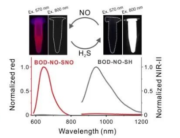 Probing the Intracellular Dynamics of Nitric Oxide and Hydrogen Sulfide Using an Activatable NIR II Fluorescence Reporter文章鏈接: