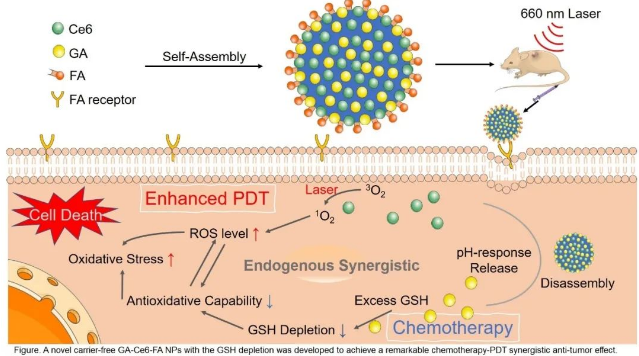 Tumor-specific carrier-free nanodrugs with GSH depletion and enhanced ROS generation for endogenous synergistic anti-tumor by a chemotherapy-photodynamic therapy