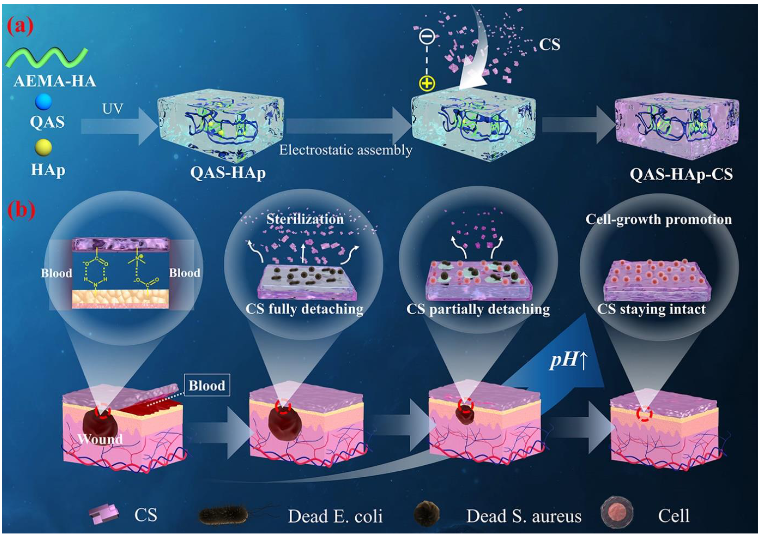 其他說明:密封狀態(tài)下保質(zhì)期半年【主要優(yōu)勢】一種具有微妙時空響應(yīng)性的自適應(yīng)敷料。具體來說,由于愈合初期傷口的酸性環(huán)境,CS涂層會迅速脫落,暴露出活性QAS基團(tuán),從而達(dá)到最大的消毒效果;同時,隨著傷口逐漸愈合并恢復(fù)到中性 pH 值,CS 將保持穩(wěn)定以保持 QAS 篩選,實現(xiàn)上皮再生的高細(xì)胞生長促進(jìn)活性。
