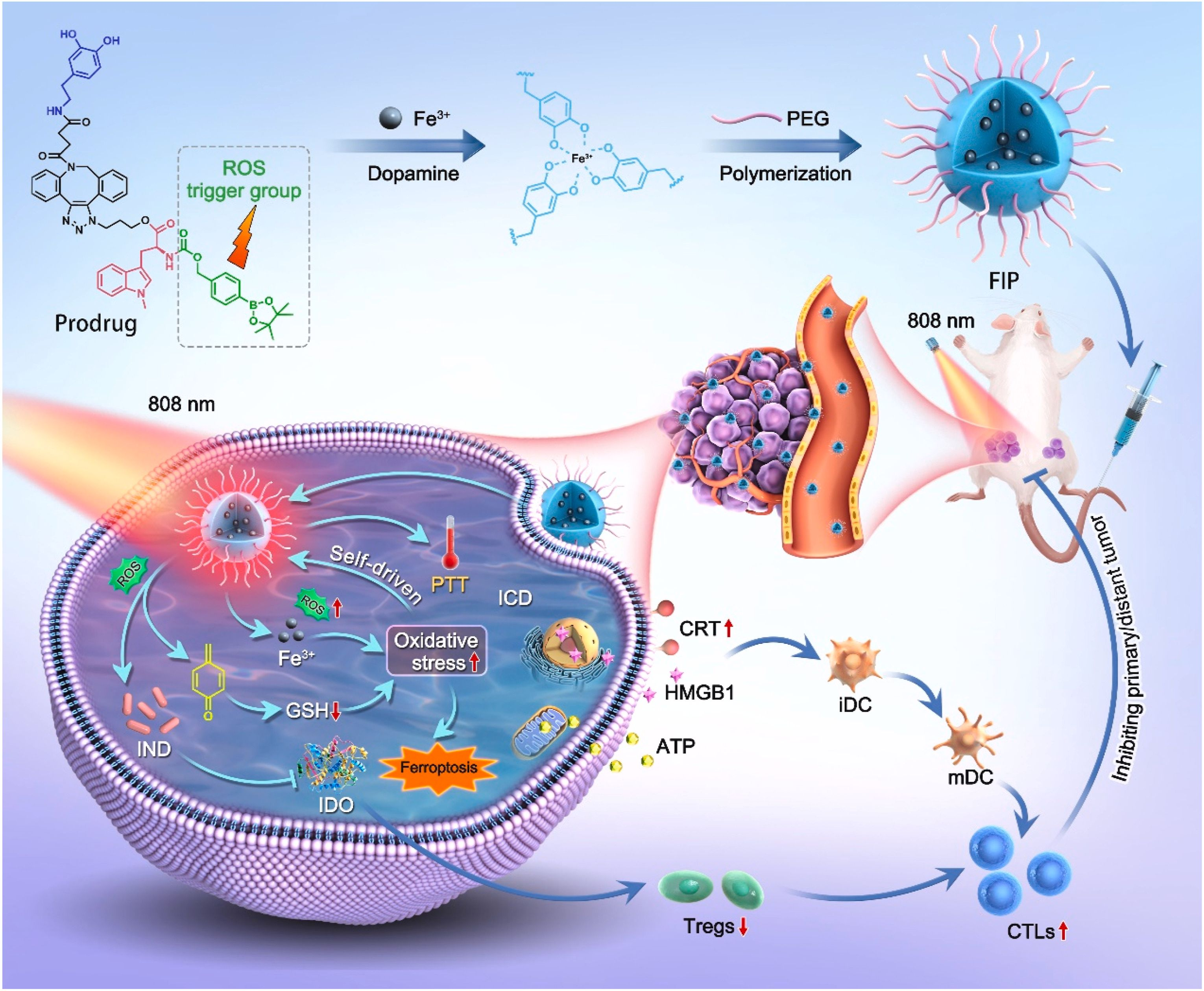 Schematic illustration of self-driven nanoprodrug platform for combined ferroptosis, photothermal therapy and immunotherapy