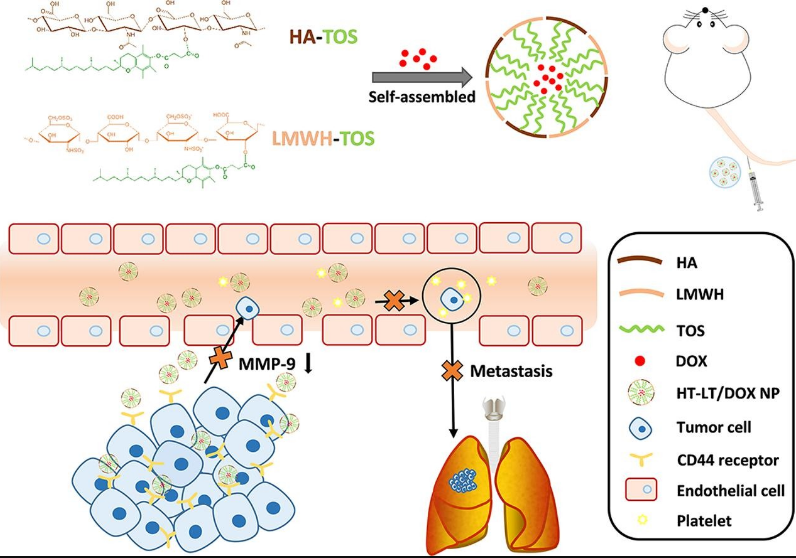 組成:透明質酸-d-α-生育酚琥珀酸酯+肝素- TOS +阿霉素(DOX)
