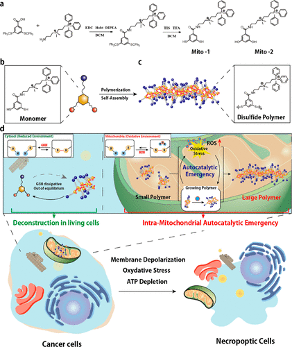 (2)實驗結(jié)果表明,這一過程會誘導(dǎo)線粒體功能障礙,進(jìn)而激活細(xì)胞壞死。綜上所述,這種原位聚合系統(tǒng)在癌癥治療和對抗耐藥癌癥方面具有廣闊的應(yīng)用潛力。