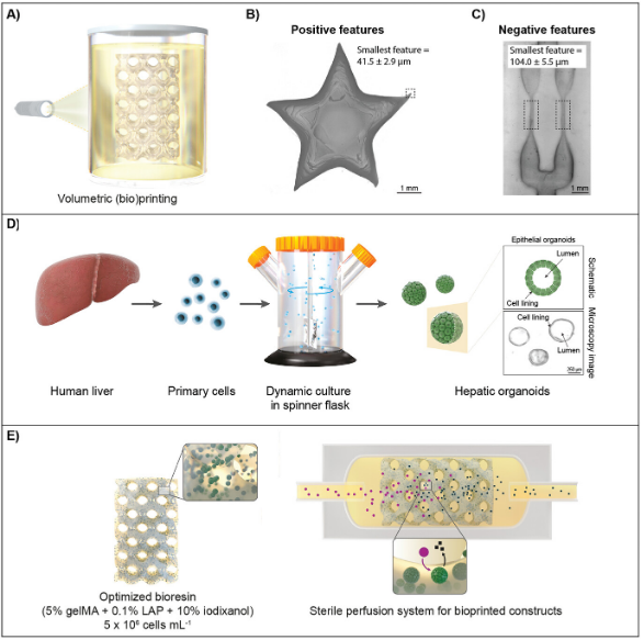 Volumetric Bioprinting of Organoids and Optically Tuned Hydrogels to Build Liver-Like Metabolic Biofactories文章鏈接: