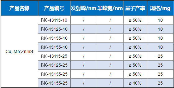 蘇州北科納米科技有限公司生產(chǎn)的油溶性Cu,Mn共摻雜量子點(diǎn)產(chǎn)品,平均的量子產(chǎn)率為50%,儲(chǔ)存時(shí)應(yīng)避免陽(yáng)光直射,4度密封暗處保存。本產(chǎn)品具有粒徑均一,吸收光譜寬泛,發(fā)射光譜對(duì)稱,熒光強(qiáng)度高而穩(wěn)定等特點(diǎn),特別適于用作量子點(diǎn)電視背光系統(tǒng)中的光轉(zhuǎn)換材料,與藍(lán)光芯片組合白光后顯色指數(shù)高達(dá)95以上,也適用于太陽(yáng)能電池與生物熒光標(biāo)記等領(lǐng)域。 本產(chǎn)品為無(wú)鎘量子點(diǎn)。