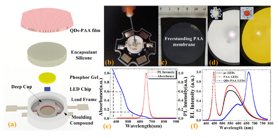 The temperature stability of quantum dots is the key to the integration of on-chip high-power LED devices, which needs to be further improved. CdSe/ZnS quantum dots have developed a warm white LED device, in which CdSe/ZnS nanoparticles are integrated into porous anodic aluminum oxide (PAA) films by self-assembly process to form a chain structure. Experiments have proved that when the concentration of quantum dots in toluene solvent ranges from 1% mg/ul to 1.2% mg/ul, the PAA film has the best light-induced excitation performance. In order to verify the reliability of the device, the research group conducted a comparative experiment. The results show that under accelerated life test conditions, the device exhibits good lumen maintenance efficiency and small color drift. The experiment also proved that the light decay is 4.6% of its initial value after 1500 hours of aging test at a junction temperature of 76°C. This article was published in the latest issue of Applied Physics Letters in 2017 sponsored by AIP. The magazine has an impact factor of 3.4 in 2017 and belongs to the second area of the JCR journal of the Chinese Academy of Sciences. This research provides a new technical guidance program for the production of high-efficiency, high-stability and high-power LED devices.