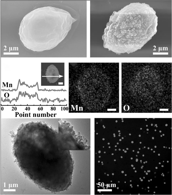 Multi-enzyme activity: catalase-like, superoxide dismutase-like, glutathione peroxidase-like, with antioxidant function; its catalase-like activity can decompose H2O2 in the tumor microenvironment. Ultrasonic oxygen , So as to solve the hypoxia problem of photodynamic therapy, sonodynamic therapy, and radiotherapy; its glutathione peroxidase activity can consume the antioxidant glutathione GSH in the tumor microenvironment, thereby promoting the above-mentioned pro-oxidation Treatment: After reacting with H2O2 and GSH, manganese oxide nanoenzyme degrades to Mn2+, which can promote Fenton reaction, catalyze H2O2 to generate hydroxyl free radicals, and further promote oxidation and treatment of tumors. At the same time, the produced Mn2+ has the function of magnetic resonance imaging; manganese oxide Generally, it has strong near-infrared light absorption capacity and can be used for photothermal therapy and photoacoustic imaging; Mn3O4 has certain magnetic properties and can be used for magnetic resonance imaging; decomposition of H2O2 produces oxygen bubbles, which can be used for ultrasound imaging; it can also be combined with chemotherapeutic drugs, Gene drugs and other realizing combination therapy.
