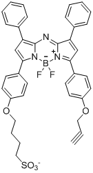 蘇州北科納米科技有限公司生產銷售“Sulfo-Azo-Bodipy 685 alkyne;Sulfo-Azo-Bodipy 685炔基”“激發波長:685, 發射波長:720, 溶解性:hydrophilic, Bodipy氟化硼二吡咯類熒光染料相對比于熒光素、羅丹明或者菁染料有著較高的量子產率、高摩爾消光系數、良好的光學穩定性和對PH不敏感的優點被廣泛應用于生物標記、熒光探針及生物成像”,該產品僅用于科研,如果需要請聯系我們