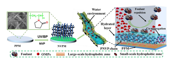 Other instructions: shelf life of half a year under sealed state [Main advantages] PNVP forms a hydration layer on the PPM surface to make the membrane has excellent anti-pollution ability. Meanwhile, the large-scale hydrophobic interactions provided by PPM and the small-scale hydrophobic interactions provided by PNVP jointly promote the co-aggregation of OMP, conferring the high adsorption capacity to NVPM.