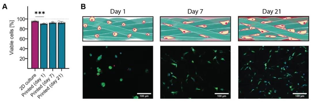 圖6 纏結(jié)微束型凝膠負載軟骨細胞的高細胞活性3D打印