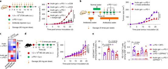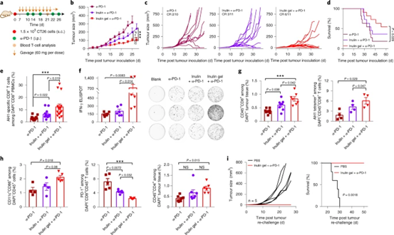 圖 5:口服菊粉凝膠有效增強(qiáng) α-PD-1 療法的療效。