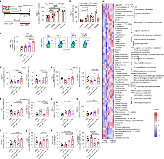 口服菊粉凝膠治療增加了關(guān)鍵共生微生物及其短鏈脂肪酸代謝物的相對(duì)豐度,并增強(qiáng)了對(duì)干擾素-γ+CD8+T細(xì)胞的回憶反應(yīng)以及干細(xì)胞樣T細(xì)胞的建立-細(xì)胞因子-1+PD-1+CD8+T細(xì)胞在腫瘤微環(huán)境中。用于腸道微生物組原位調(diào)節(jié)的凝膠可能更廣泛地適用于治療與腸道微生物組失調(diào)相關(guān)的病理。相關(guān)論文以題為發(fā)表在《Nature Biomedical Engineering》上。