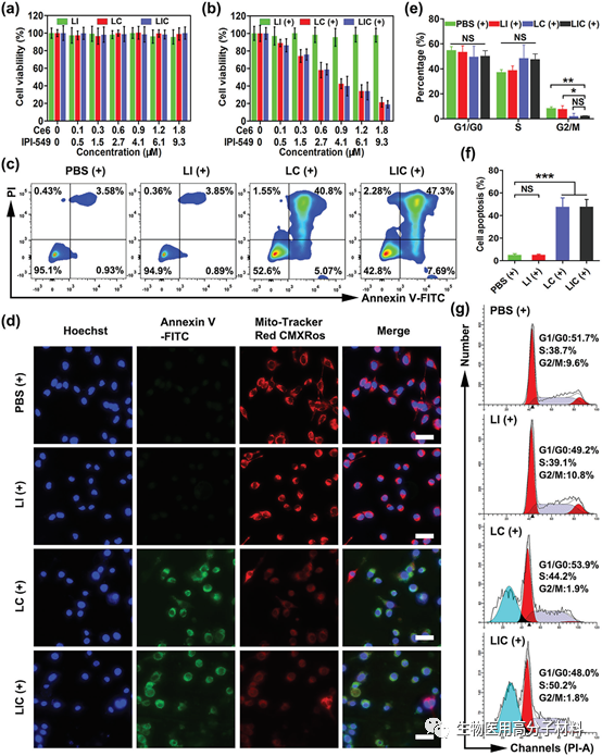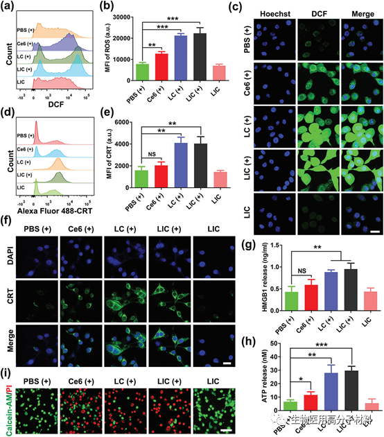 圖3. 光動力介導下的細胞毒性以及免疫原性死亡誘導