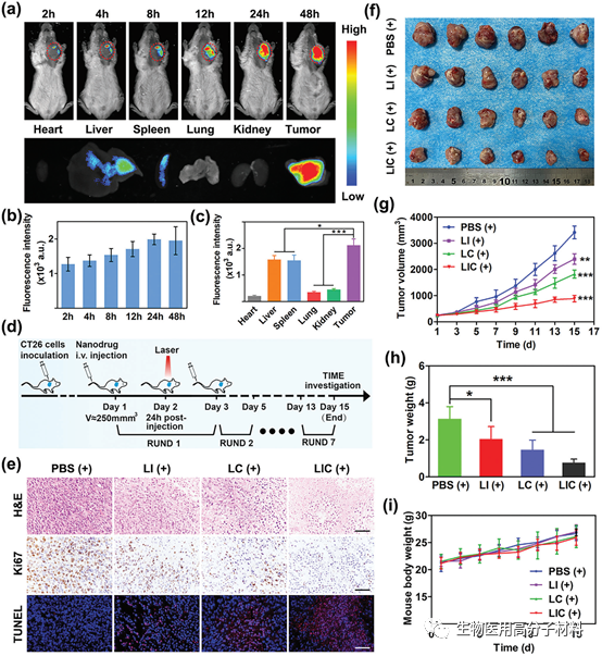 圖5. 納米藥物的體內熒光成像及協同抗腫瘤治療