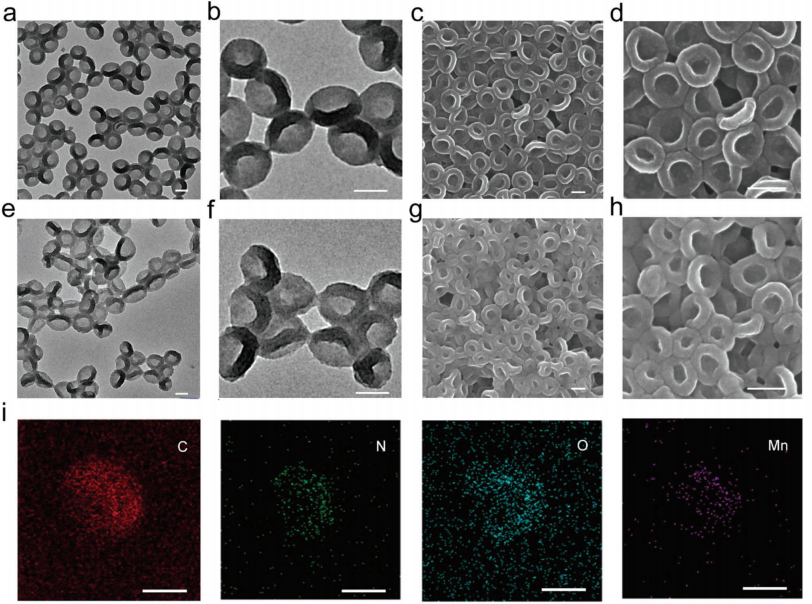 共價有機框架(COFs)在生物醫學領域的應用越來越受到人們的關注。以COFs為基礎的納米增敏劑具有均勻的納米級形態和腫瘤特異性療效,然而,它們的合成仍然具有挑戰性。在本研究中,以可控的方式合成了不同的COF納米碗,并設計成具有腫瘤特異性聲動力學活性的可激活納米增敏劑。高結晶度保證了COF納米碗的有序多孔結構,從而有效地裝載了小分子聲敏劑Rose Bengal (RB)。為了避免對正常組織的非特異性損傷,在負載RB的COFs上原位生長的氧化錳(MnOx)特異性地抑制了聲敏化效應。與腫瘤過表達谷胱甘肽(GSH)反應后,“看門人”MnOx在超聲照射下迅速分解,恢復COF納米增敏劑的活性氧(ROS)生成能力。增加細胞內活性氧應激和谷胱甘肽消耗同時誘導鐵死亡,以提高聲動力功效。此外,非常規的碗狀形態使納米致敏劑增強了腫瘤的積聚和保留。腫瘤特異性聲動力治療與鐵死亡相結合,在殺傷癌細胞和抑制腫瘤生長方面具有很高的療效。