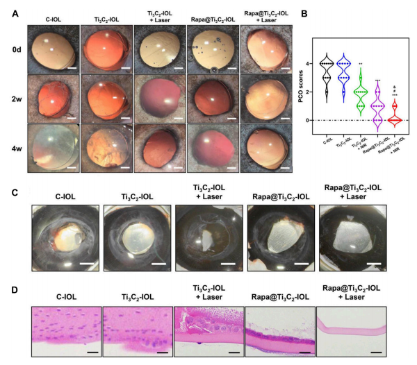 (圖4 Rapa@Ti3C2-IOL植入體內預防PCO)