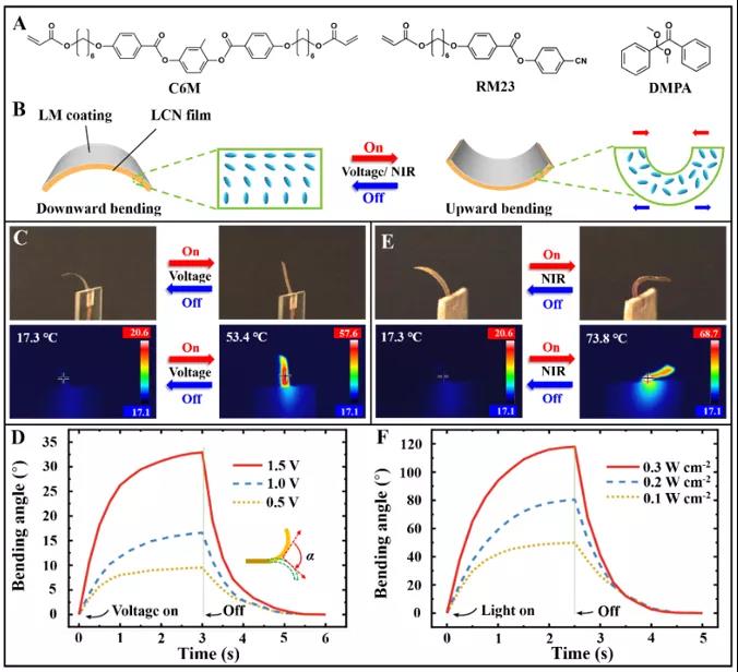 Figure 2 programmable lm-lcn soft actuator with NIR light driven shape
