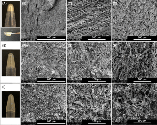 chart   2. gel structure. The gelation of A-D) E3-VB-K3 was tested by inverted vial and tweezers operation. After freeze-drying, the microstructure of the gel was cut into (B, C) longitudinal and (D) cross sections and observed by scanning electron microscope (SEM). E-H) e3-vbb-k3, with (F, g) longitudinal and (H) cross sections, and (I-L) e3-vbbb-k3, with (J, K) longitudinal and (L) transverse cross sections. Because of the low hardness of E3-VBB-K3 and E3-VBBB-K3 gels, they can not be treated with tweezers.