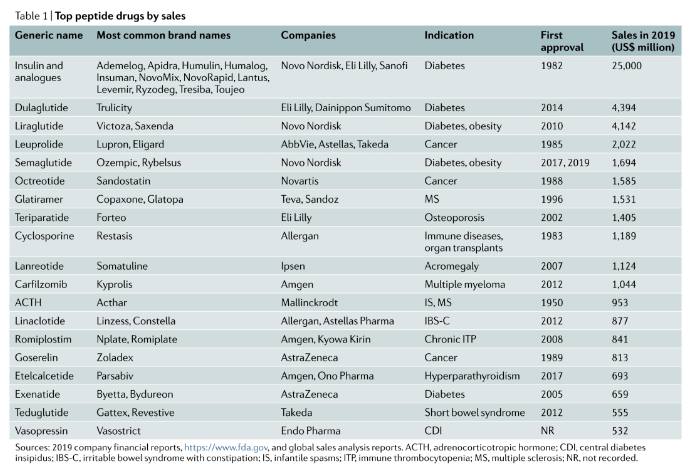 Since the 1960s, more than 80 peptide drugs have entered the clinic. In addition to insulin, ACTH, GLP-1, etc., natural products have become another important source of peptide drugs.